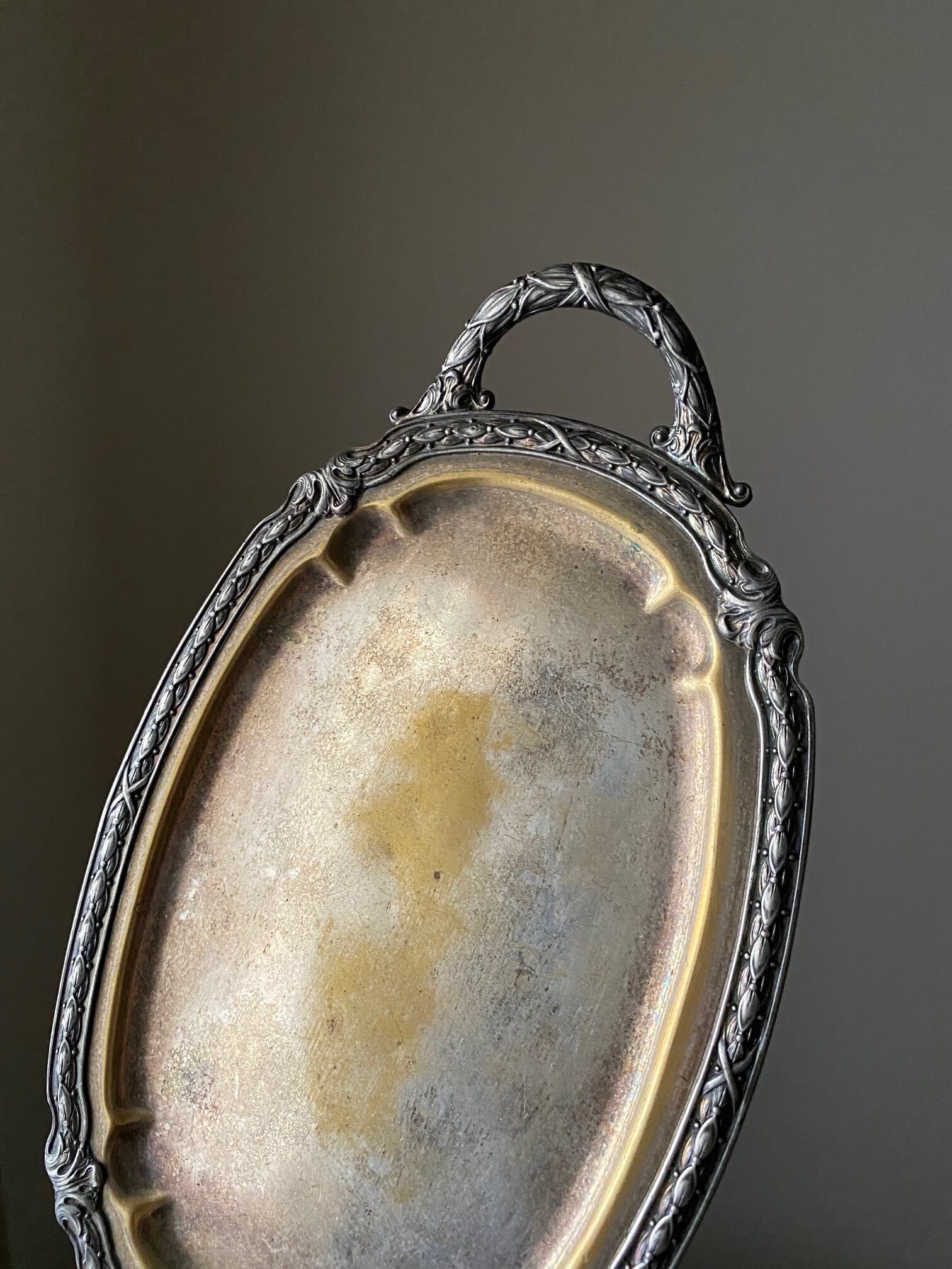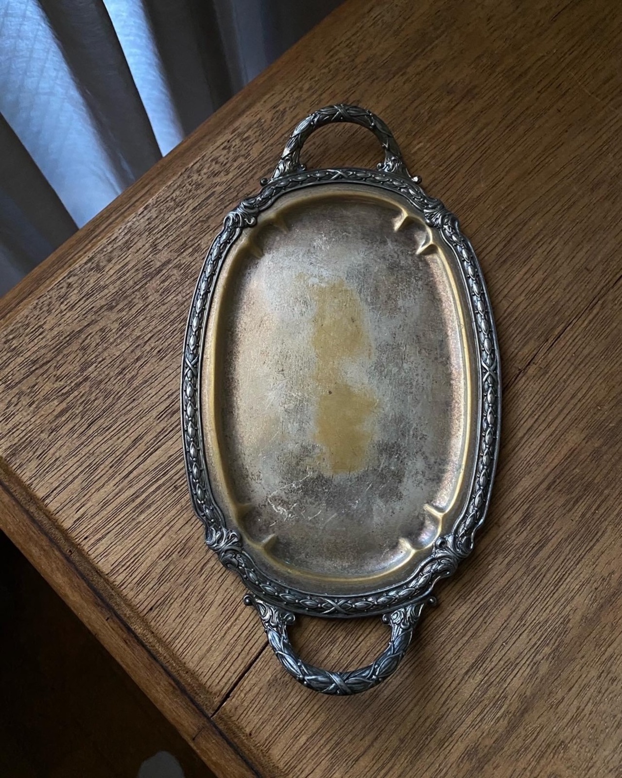 素材は合金にシルバーメッキが施されていますが、トレイ部分は摩耗し地金の色が出て、枯れた味わい。